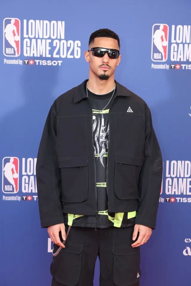 NBA伦敦赛当日下午在伦敦O2体育馆举行,奥兰多魔术对阵孟菲斯灰熊。刚在周六代表阿森纳出战的德克兰-赖斯来到现场观赛,坐在场边贵宾席,视角极佳。